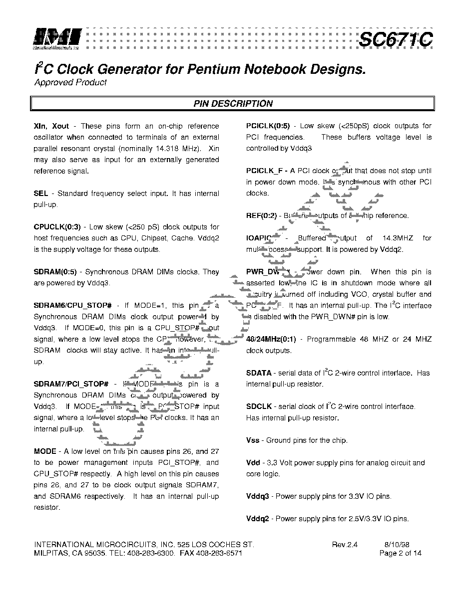 | IMISC671CYB | 制造商:未知厂家 制造商全称:未知厂家 功能描述:CPU System Clock Generator |